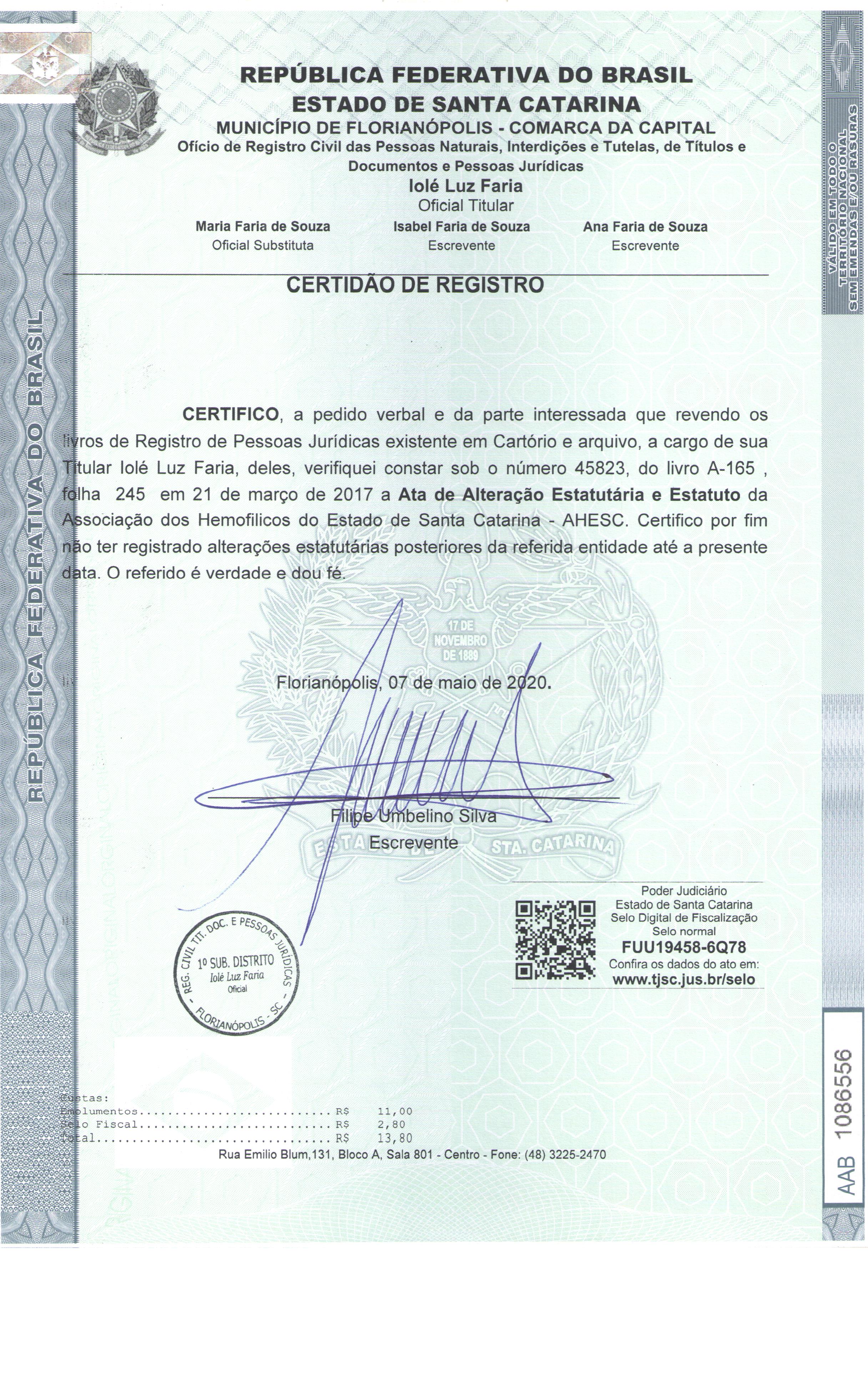 Certidão de registro 2020.